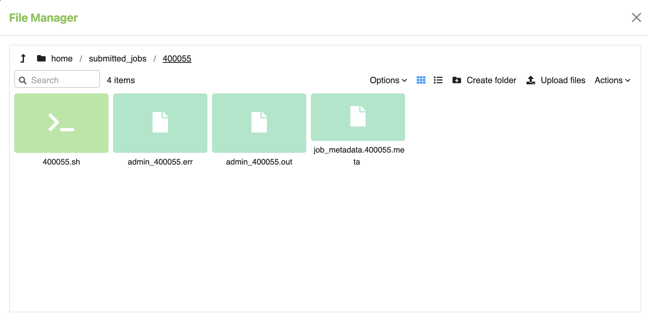 The files displayed in the illustration above represents the outcome of the job execution. In this example, these files include: